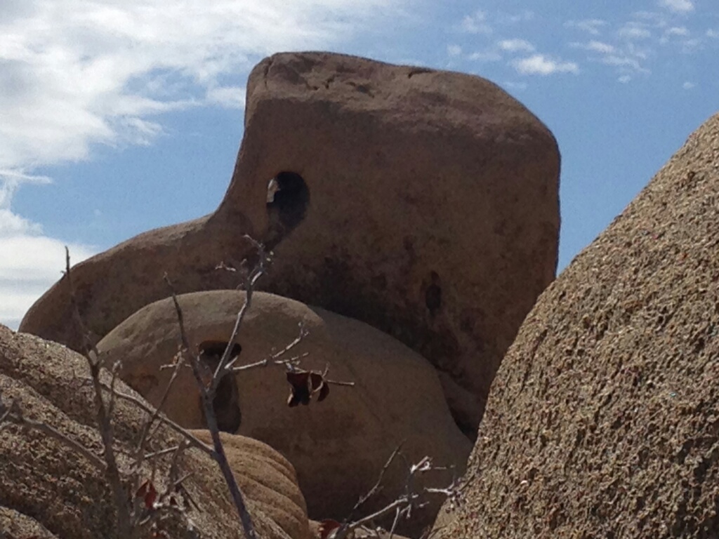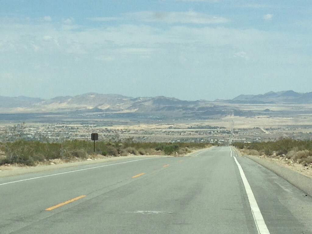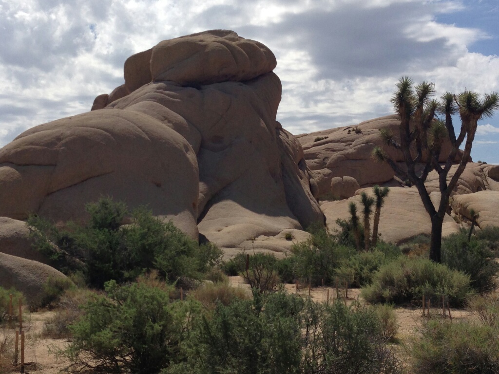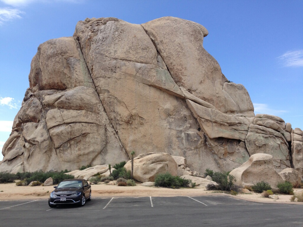 Joshua Trees…Felsen…(mein derzeitiges Auto)…Ist wieder ein ganz anderer Park (jetzt in der Nacht blitzt es dort gerade). Auf der Tafel sind Kletterrouten (sieht man schlecht), eine heißt ‚A Cheap Way to Die‘ 😉 und der Blick auf Twentynine Palms.